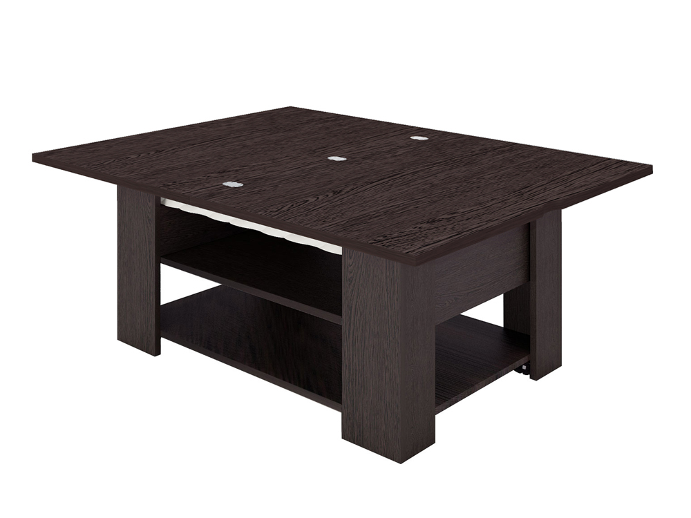 «Агат 27» – это многофункциональная модель, которая сочетает в себе функции журнального и обеденного столов. Cтолешница легко увеличивается вдвое благодаря поворотному механизму.