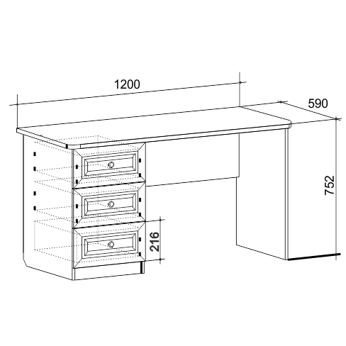 Состоит из: стола с 3 выдвижными ящиками.