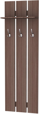 Наша модель особенно подойдет для небольшой прихожей, выполненной в классическом стиле, поскольку внешне полностью имитирует натуральную ценную древесину. Причем вариации расцветок позволяют реализовать практически любые дизайнерские задумки. Это и светлый молочный дуб, и темный ясень Шимо, и благородный дуб, и нежная ольха. Есть возможность приобрести вешалку оттенка венге, которая замечательно подойдет к стилю модерн. А если вам нужно составить композицию, вы можете приобрести в качестве сопутствующего товара отличную вместительную тумбу для обуви того же оттенка.