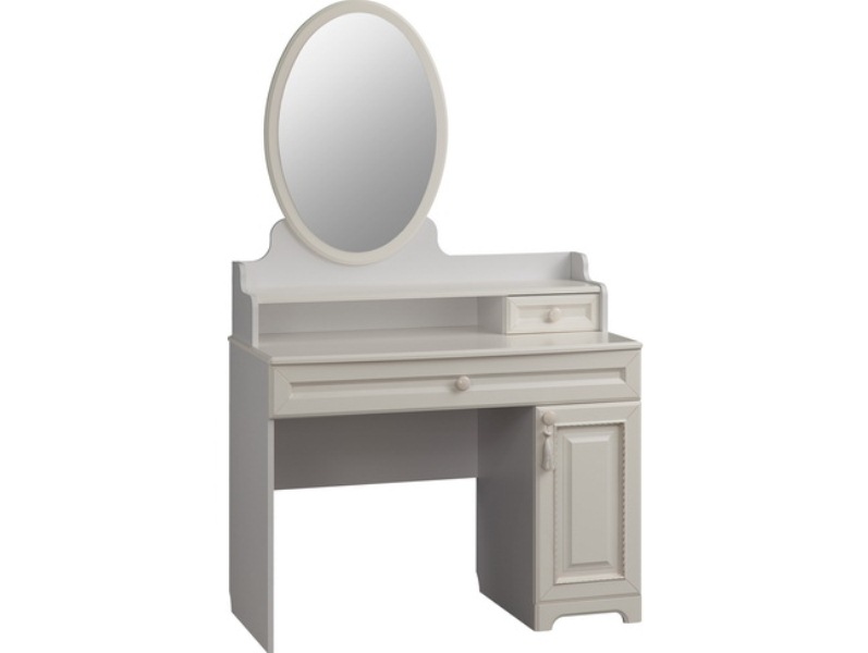 Трюмо из серии «Белла» – настоящая находка для истинных леди. Трюмо сочетает в себе утонченный дизайн, функциональность и удобство. Столешницу из МДФ украшает фрезеровка. Декоративная кисть на ручке окончательно подчеркнет изящество изделия.
