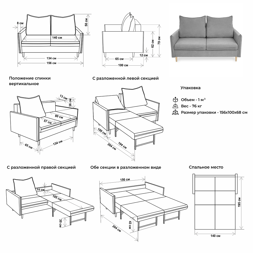 Спальное место, см: 1950*1400