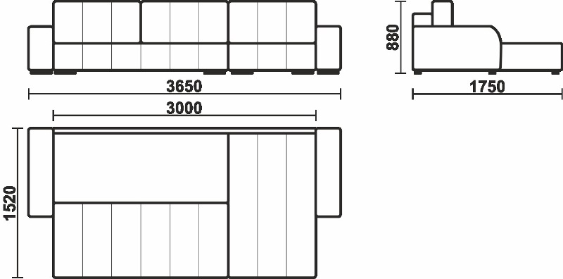 Габаритные размеры: 3650х1750х880 (мм)
