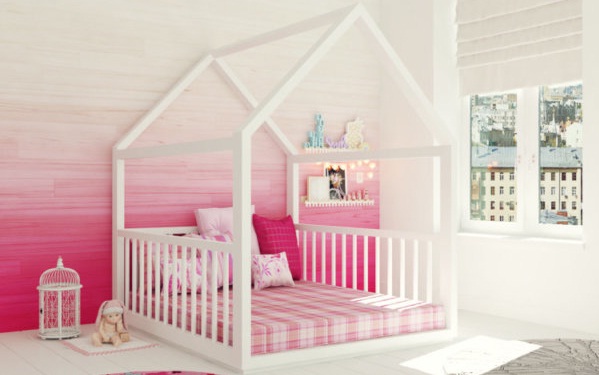 Цвет домика кроватки можно выбрать абсолютно любой! Так же и ткань можно выбрать разного цвета или фактуры.
