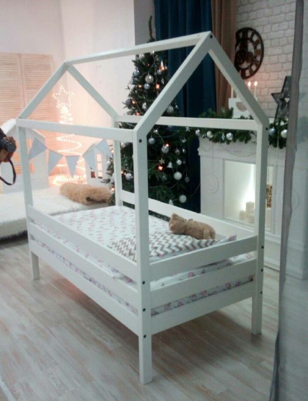 Под заказ можно дополнить домик кроватку аксессуарами: балдахин на крышу, комплект постельного белья, комплект шторы (2 шторы + 2 завязки)
