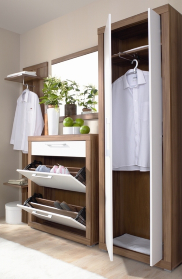 В наборе предусмотрены все необходимые элементы: шкаф, с выдвижным кронштейном под плечики для верхней одежды, обувница на два отделения и с выдвижным ящиком, навесное зеркало и панель с крючками и полкой. Все элементы можно расположить в нужном Вам порядке, создавая индивидуальный интерьер прихожей.