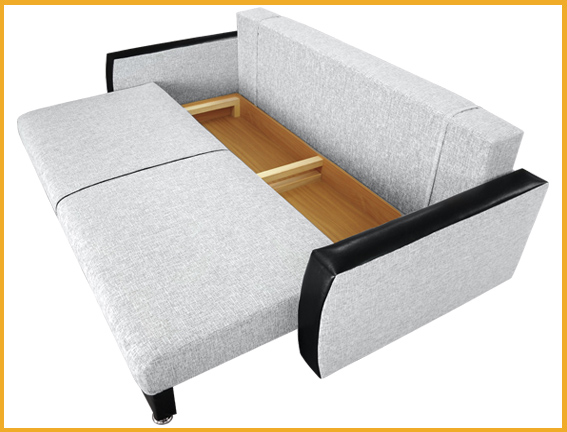 Современный молодежный стиль. Возможность использовать как центральный обьект интерьера. При трансформации требуется расстояние между стеной и диваном. Ровное спальное место. Для удобства присутствует задняя стенка в режиме спального места. Наличие бельевого ящика. Диван-кровать дополнительно опирается на металлические опоры. В основании спинки и сиденья деревянная рамка, на которую кладется пружинный блок с настилом из термовойлока и эластичного листового пенополиуретана. Съемные чехлы на подушках. В комплекте идет кресло- кровать. Разница высоты сидений кресел и дивана в пределах 3 см допускается.