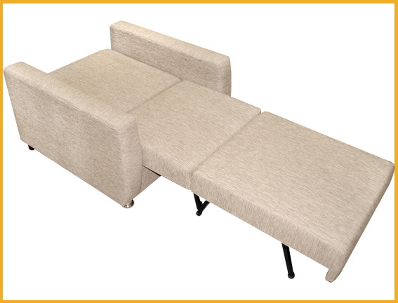 Современный молодежный стиль. При трансформации требуется небольшое расстояние между стеной и спинкой кресла- кровати. В разложенном виде  получается ровное односпальное место. В основании спинки и сиденья деревянная рамка, на которую кладется  эластичный пенополиуретан. Кресло- кровать комплектуется съемной приспинной подушкой из формованного пенополиуретана. Механизм раскладки "Юниор". Чехол у подушки съемный.