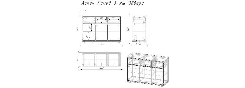 «Аспен» Комод 3 ящ 3двери