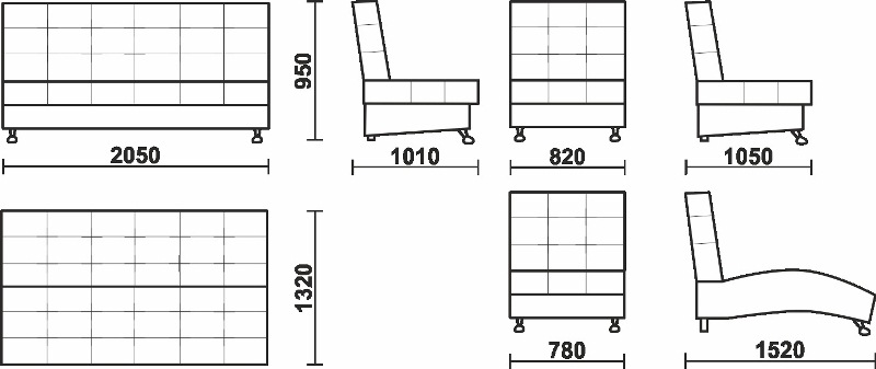 Габариты кресла: 790*1500*950
