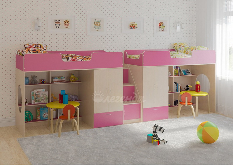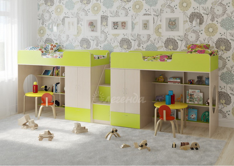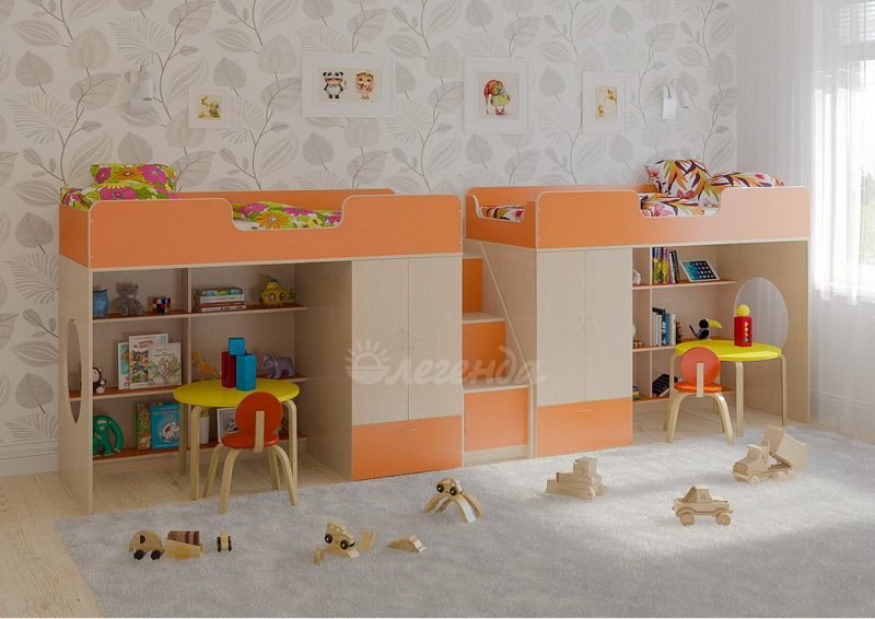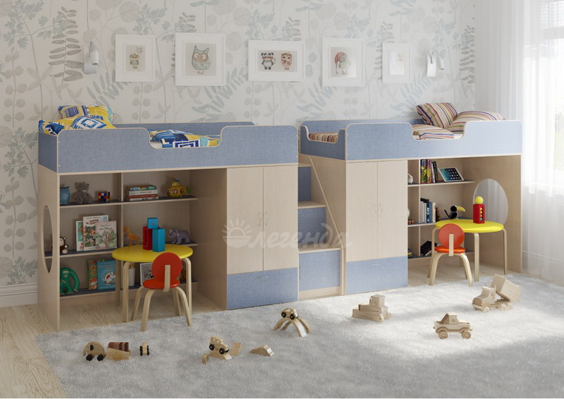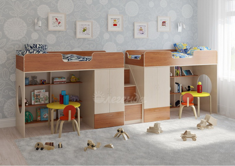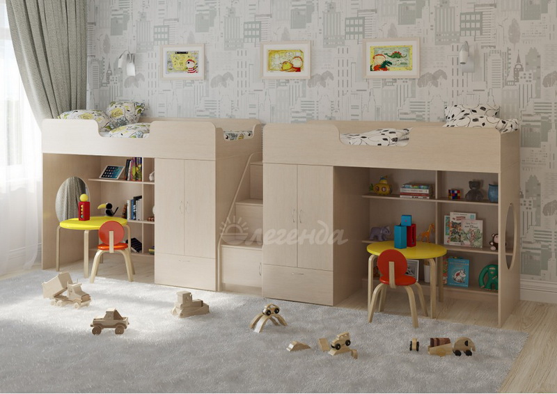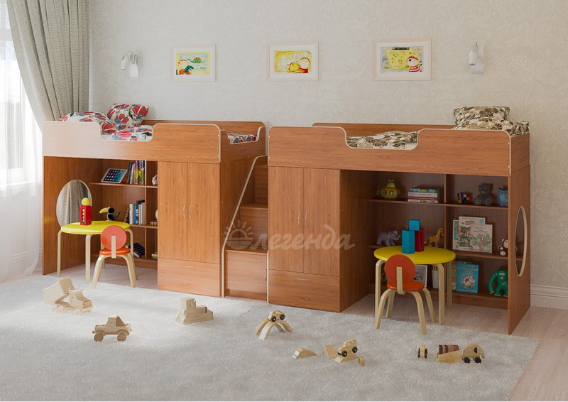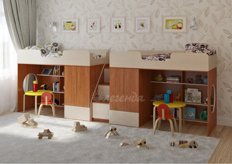 Две кровати Легенда 3 с большим спальным местом 1800х800Под спальным местом для каждого малыша располагается игровая зона.