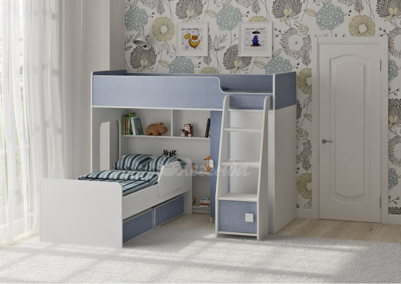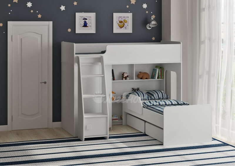 Двухъярусная кровать двумя перпендикулярными спальными местами - 1750х750 и 1600х700.