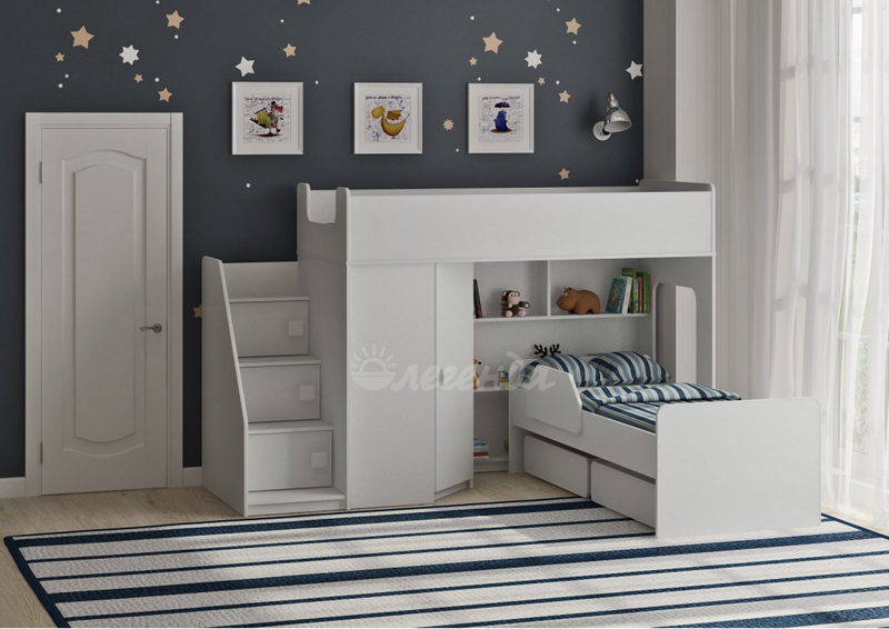 Высота кровати – всего 1405 мм. Удобно - взрослый может заправить кровать, не забираясь на второй ярус.