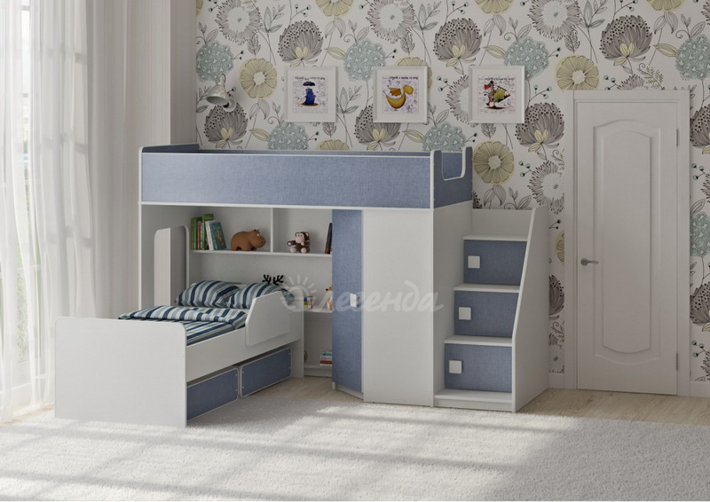 Двухъярусная кровать двумя перпендикулярными спальными местами - 1750х750 и 1600х700 мм.