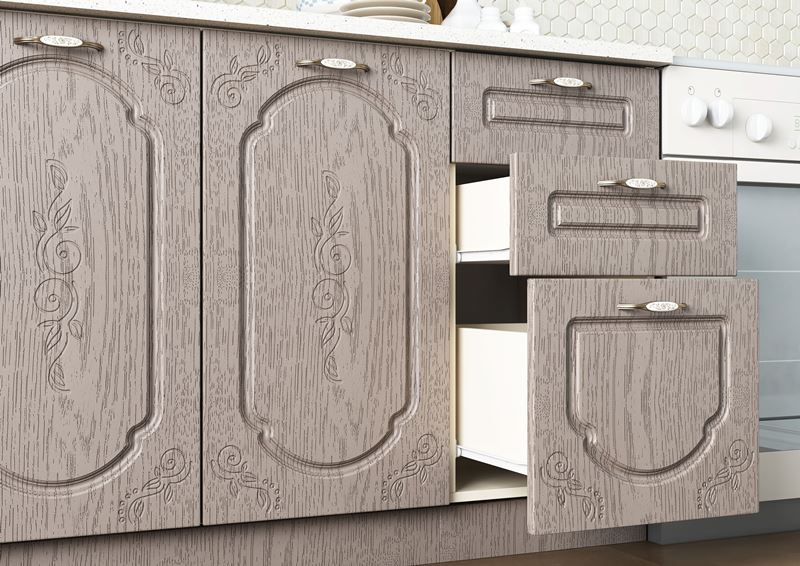 Кухня в стиле Прованс с красивой фрезеровкой на фасадах.