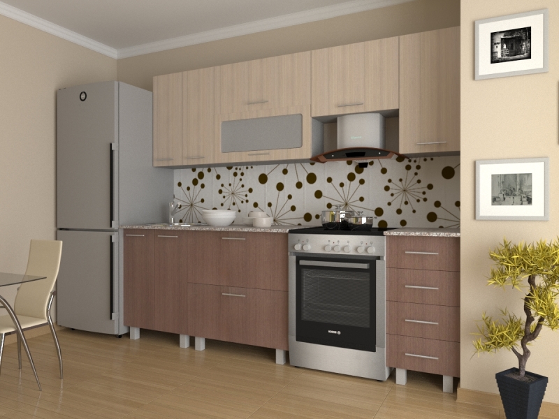 Глубина  напольных столов – 500 мм, верхних шкафов- 280мм.