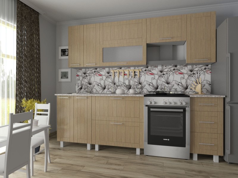 Дополнительно может комплектоваться печным ящиком (газлифт), угловым модулем. Мойка в комплект не входит.