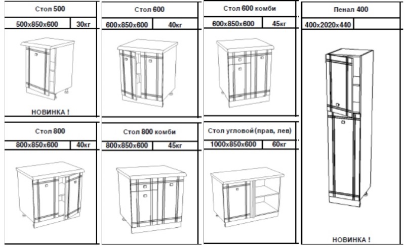 Кухня СИТИ  включает в себя 14 модулей, шириной 400мм, 600мм, 800мм и 1000 мм.