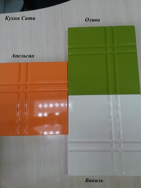 Цвет фасадов МДФ (Олива+Ваниль, Апельсин+Ваниль):