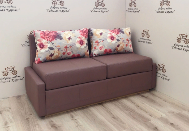 Диван имеет механизм трансформации «французская раскладушка» Механизм трансформации весьма прост и требует минимальных усилий: достаточно снять подушки и поднять конструкцию спального места за специальную ручку в передней части раскладушки, после чего, установленный горизонтально механизм раскладушки дважды разворачивается и устанавливается на опорные ножки. При раскрытии раскладушки, ножки автоматически раскладываются и жёстко удерживаются на полу с небольшим наклоном вперёд. Данный механизм трансформации обеспечивает дивану компактность в сложенном виде и достаточно просторное спальное место в разложенном.