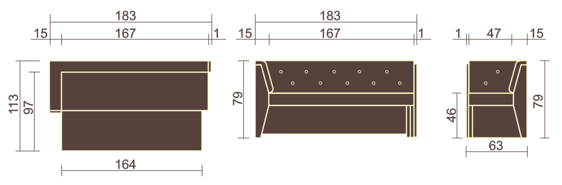 Конструктивные особенности модели позволяют выпускать мебель по индивидуальным размерам (в пределах существующей размерной сетки). Глубина и высота дивана не меняются, как и ширина раскладного сиденья (оно при любых габаритах дивана равно 98 см). Длина раскладного сиденья меняется пропорционально длине дивана.