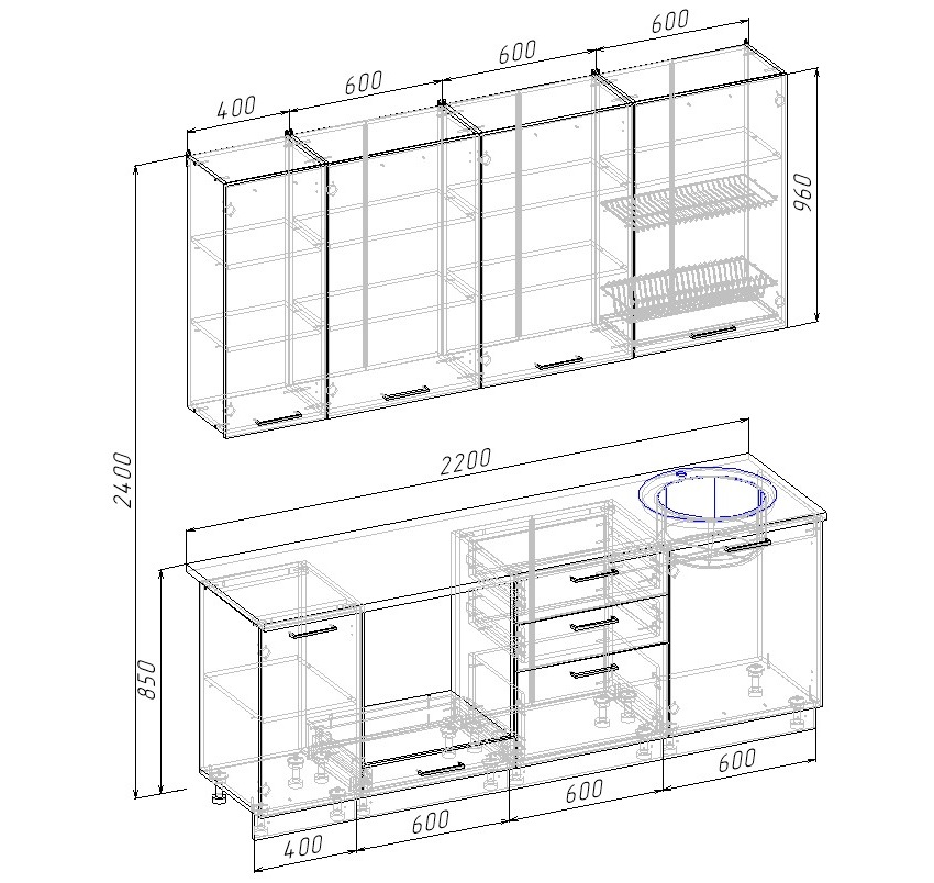 Кухонный гарнитур Жемчуг размером 2200 мм