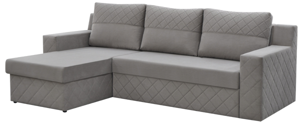 Современный стильный диван. Возможно использовать как центральный объект интерьера. Для трансформации не требуется расстояние между стеной и диваном. В основании короба оттоманки имеется емкость для постельных принадлежностей. Спальное место на основе пружины- змейки, термовойлока и высокоэластичного ППУ. Выкатная часть изготавливается в основной ткани. Декоративная отстрочка на приспинных подушках и элементах дивана. Механизм раскладки «Дельфин»