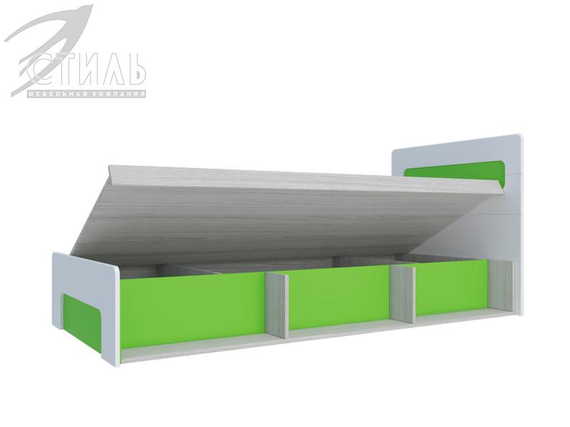 - Кровать имеет металлические подъемные механизмы и секции для хранения.