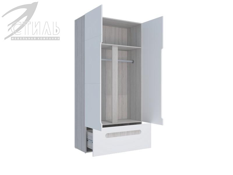 - Шкаф оснащен секцией с выдвижной штангой, секцией с полками и выдвижным ящиком на шариковых направляющих длиной 400 мм