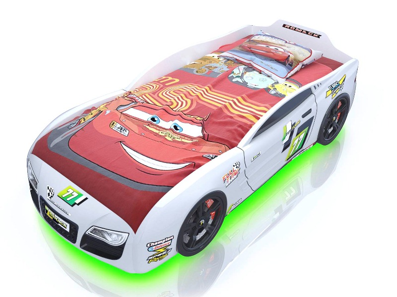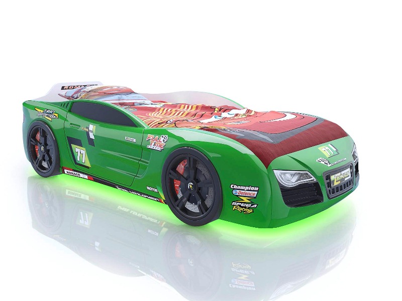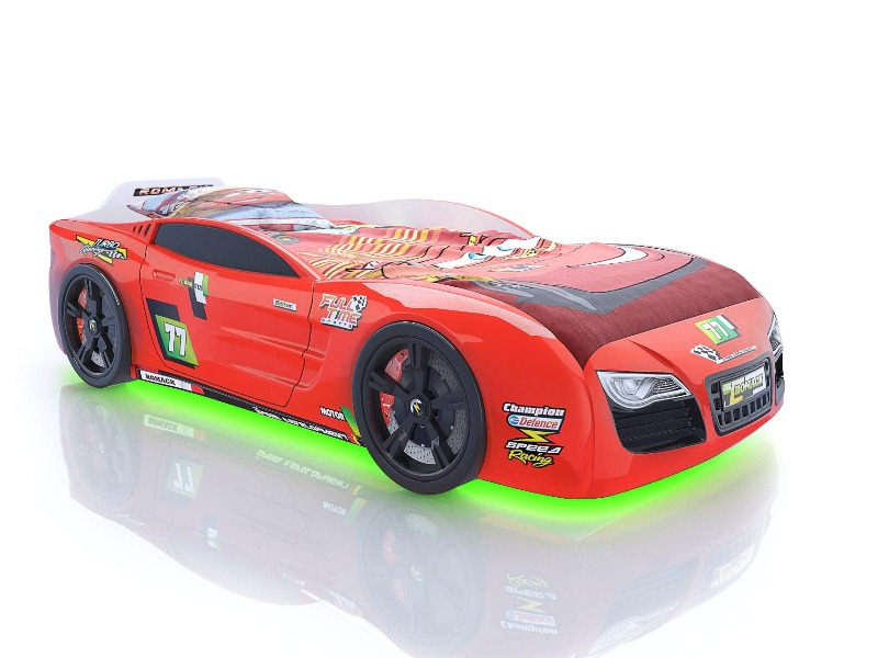 Вы только посмотрите на изгибы бампера, мощные колеса, стильный дизайн – ну какой мальчик устоит перед таким подарком? Все элементы уникальной кровати-авто полностью обтекаемы, они выполнены в технике 3д и повторяют форму настоящей спортивной машины. Подарите радость своему сыну, внесите новизну и краски в его детскую, а он отблагодарит вас любовью и заботой. Замените обычную унылую кровать на современную, стильную и оригинальную спортивную машину, которая будет радовать ребенка на протяжении нескольких лет.