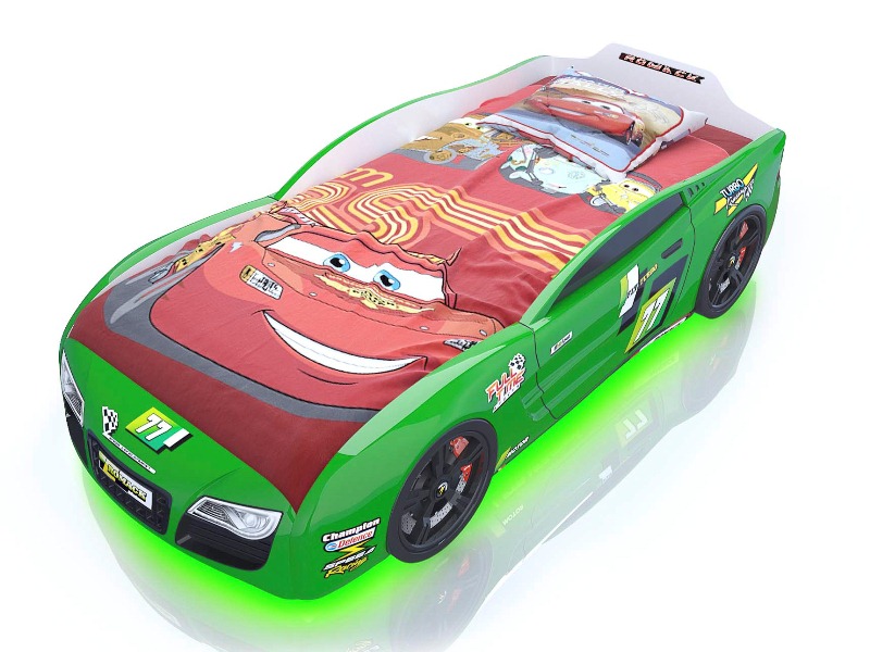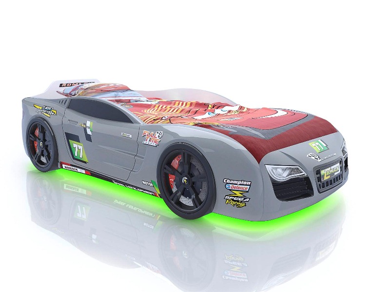 Вы только посмотрите на изгибы бампера, мощные колеса, стильный дизайн – ну какой мальчик устоит перед таким подарком? Все элементы уникальной кровати-авто полностью обтекаемы, они выполнены в технике 3д и повторяют форму настоящей спортивной машины. Подарите радость своему сыну, внесите новизну и краски в его детскую, а он отблагодарит вас любовью и заботой. Замените обычную унылую кровать на современную, стильную и оригинальную спортивную машину, которая будет радовать ребенка на протяжении нескольких лет.