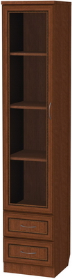 Однодверный высокий шкаф – прекрасное решение не только для дома, но и для офиса или учебного заведения. В шкафу имеется пять полок, расположенных на равном расстоянии друг от друга. На них можно прекрасно разместить книги, любые каталоги, папки, которые обычно тоже подписывают – благодаря прозрачному фасаду и возможности систематизировать расположение предметов вы легко найдете любой из них. На полках, которые находятся на одинаковом расстоянии друг от друга, можно расположить также учебники или какие-нибудь модели, макеты в кабинетах биологии, географии, истории: так, чтобы они всегда были видны и заинтересовывали, и в то же время для надежного хранения, и чтоб не было необходимости каждый раз их доставать и протирать от пыли. Благодаря универсальному лаконичному дизайну такой шкаф подходит для любой, даже официальной обстановки.