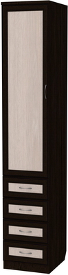 Компактный, узкий шкаф, в ящики и на полки которого можно разместить вещи, аксессуары, необходимые мелочи. Такой шкаф занимает минимум места, но при этом обладает функциональностью и строгой красотой.
