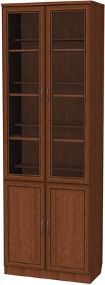 Четыре полочки верхней части шкафа обладают одинаковыми размерами. Созданы они таким образом, чтобы на них можно было хранить не только книги стандартного размера, но и большие форматом книги, наподобие разнообразных справочников и энциклопедий.
