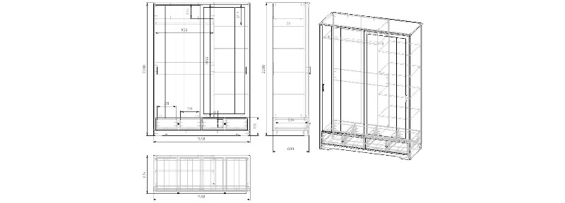 - Особенности: Фасад: Имитация составного фасада (зеркало составное 1759х517 и 1759х160)