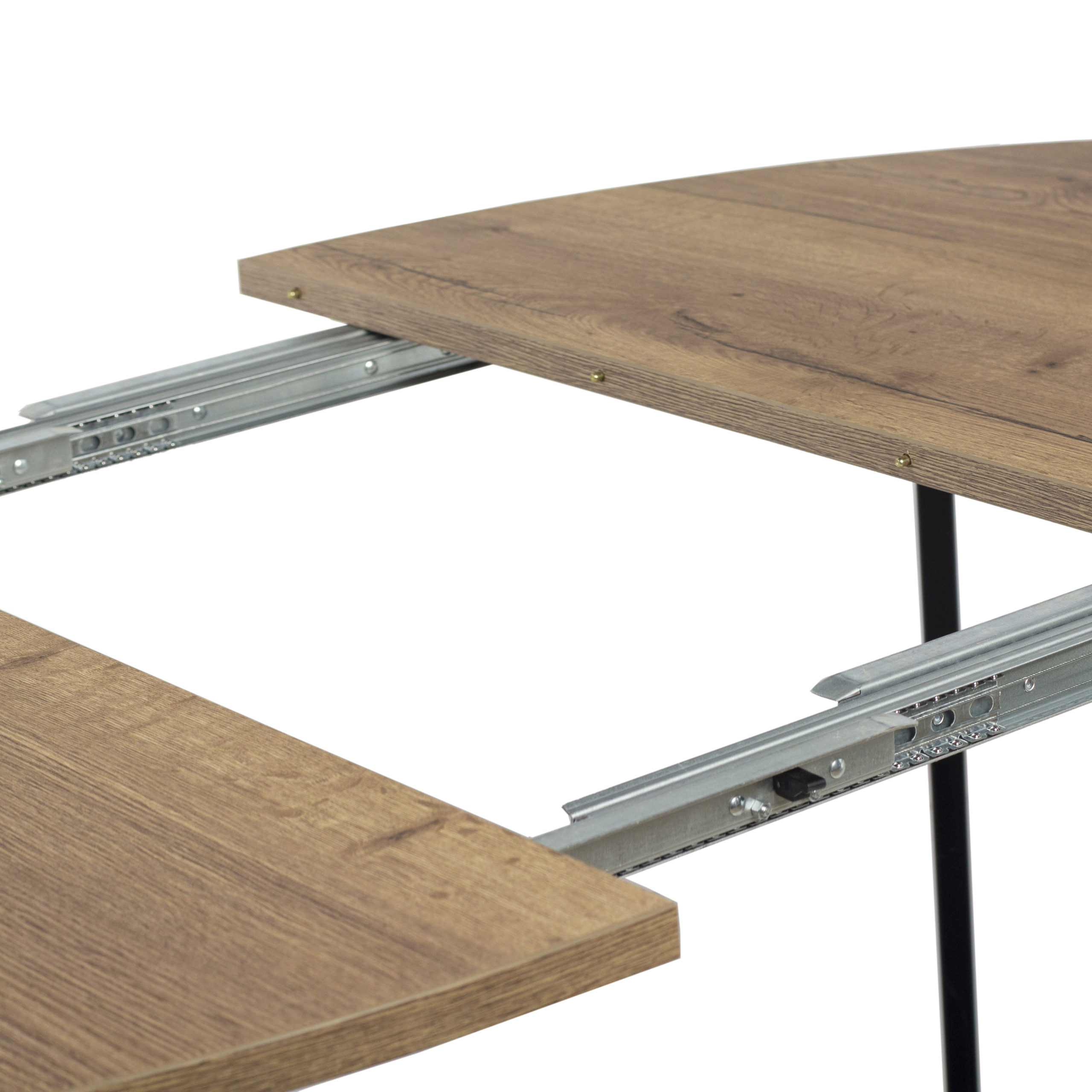 Стол Олсен раздвижной выполнен из монолитного ЛДСП EGGER толщиной 25 мм, вставка цельная 45 см хранится отдельно. На выбор три цвета опор: Белые, Черные, Золото.