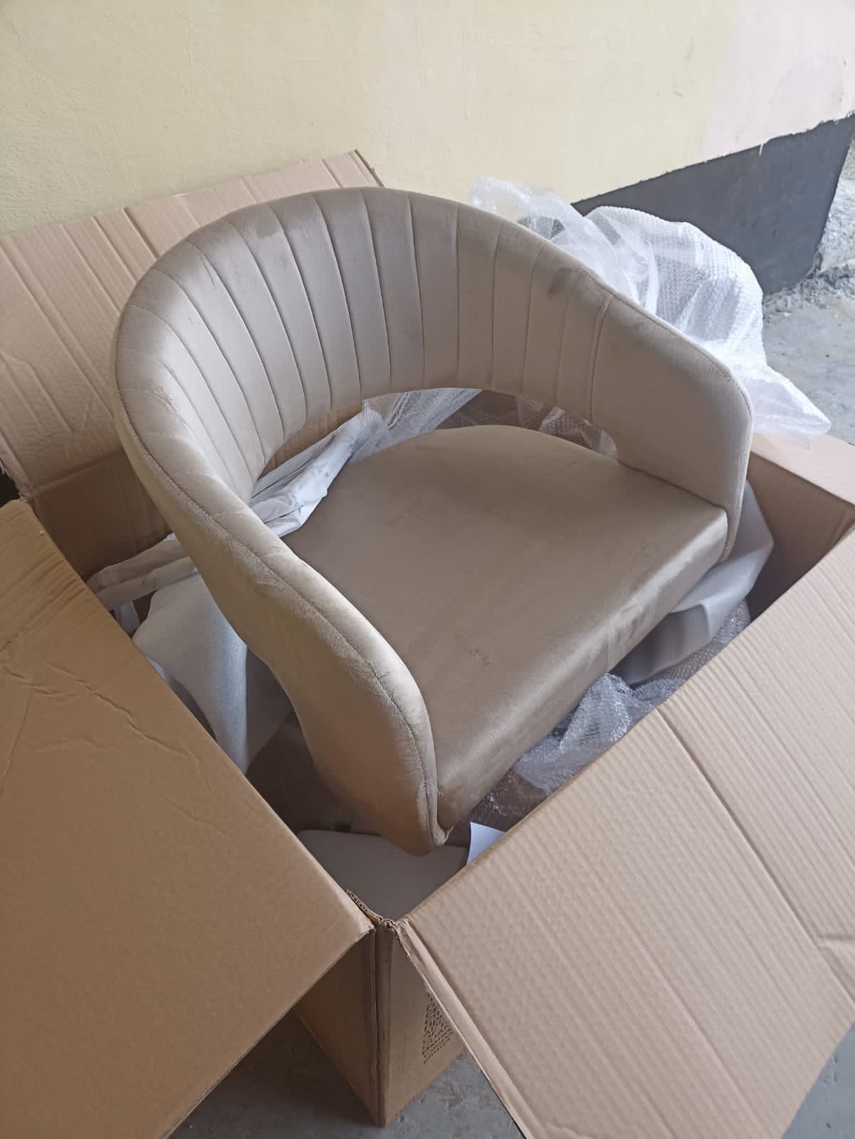 Дизайнерский стул бежевого цвета. Велюр, металлические ножки.