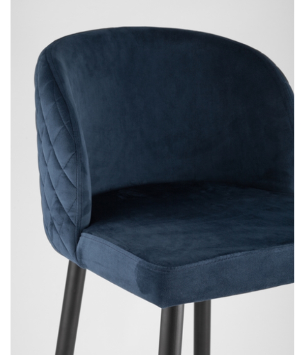 Барный стул Оскар с мягкой обивкой из велюра и стальными ножками черного цвета.