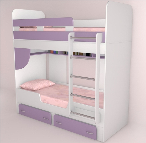 Кровать с усиленными ребрами жесткости. Для ступеней лестницы предусмотрены противоскользящие наклейки.