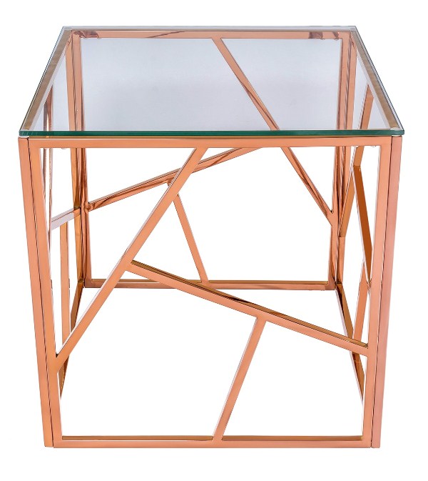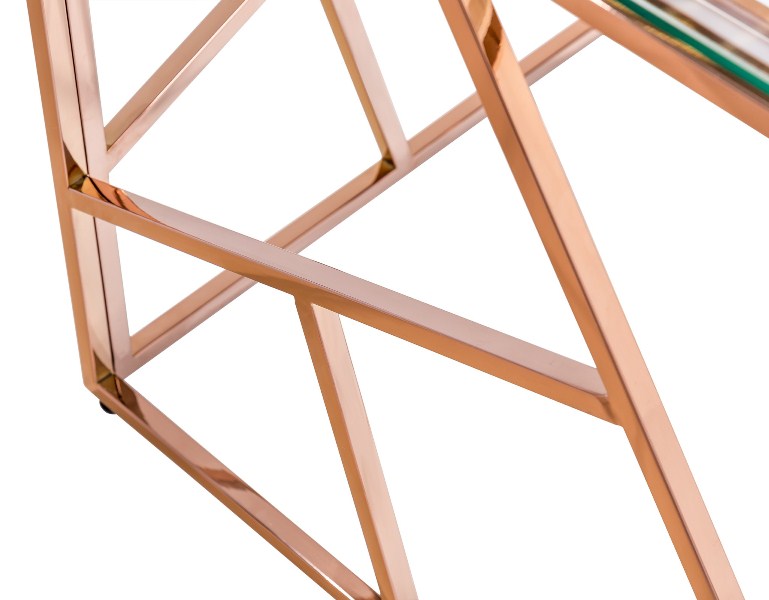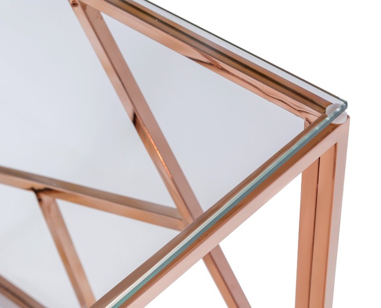 Журнальный столик  АРТ ДЕКО, прозрачное стекло, сталь розовое золото