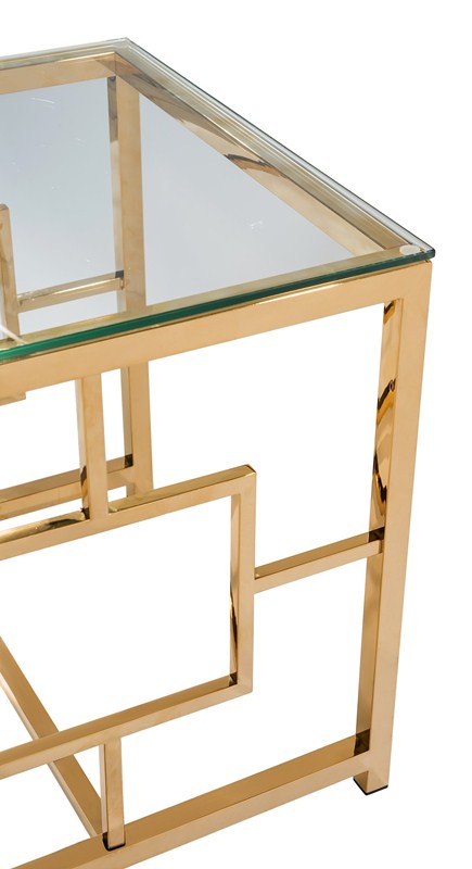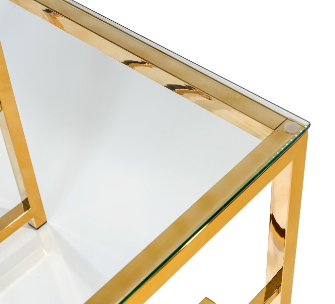 Журнальный столик БРУКЛИН, прозрачное стекло, сталь золото.